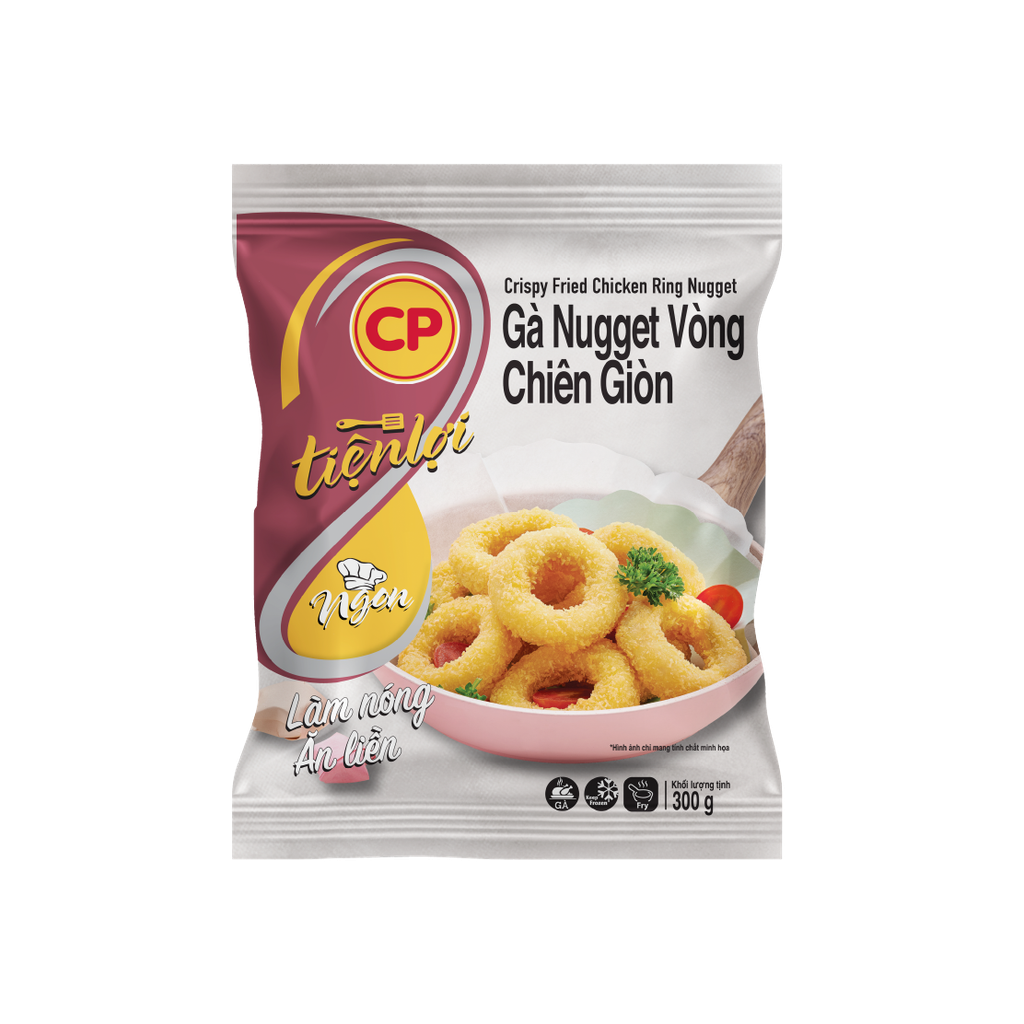 Gà nugget vòng chiên giòn CP là món ăn làm sẵn cực kỳ thơm ngon và giàu dinh dưỡng, được chế biến từ phần gà phi lê tươi ngon, tạo thành những vòng tròn hấp dẫn. Sản phẩm được tẩm gia vị đậm đà và phủ lớp bột chiên xù giòn tan, mang lại hương vị giòn rụm bên ngoài, mềm mại bên trong. Món gà nugget này rất thích hợp để ăn vặt hoặc kết hợp với cơm trắng, mang lại bữa ăn ngon miệng và tiện lợi cho gia đình. Thương hiệu CP luôn cam kết về chất lượng và vệ sinh an toàn thực phẩm, giúp bạn an tâm sử dụng.