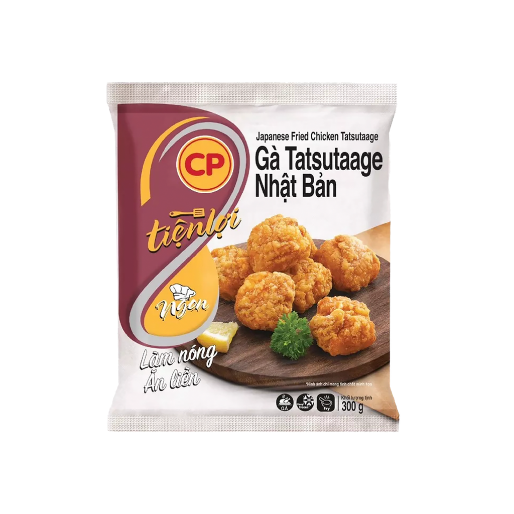 Gà Tatsutaage Nhật Bản CP là món ăn làm sẵn thơm ngon, giàu dinh dưỡng và kích thích vị giác, được chế biến từ những miếng thịt gà tươi ngon. Thịt gà được tẩm gia vị đậm đà và phủ lớp bột chiên xù giòn tan, tạo nên món ăn hấp dẫn, thích hợp ăn vặt hoặc ăn cùng cơm trắng. Sản phẩm đến từ thương hiệu C.P nổi tiếng với chất lượng đảm bảo và hương vị tuyệt vời, mang lại sự tiện lợi cho bữa ăn hàng ngày của gia đình.