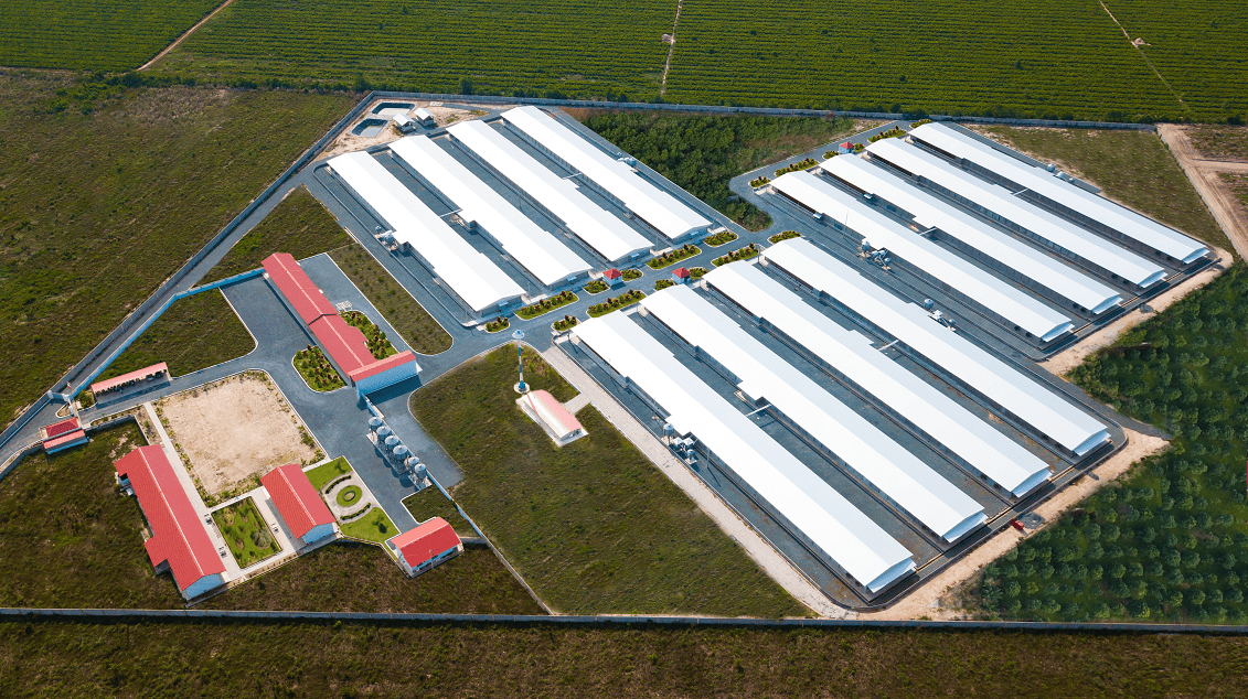 Nhà máy sản xuất thức ăn chăn nuôi, các trang trại sản xuất gà (từ gà giống, nhà máy ấp trứng đến trại gà thịt) cùng với nhà máy giết mổ và nhà máy chế biến thực phẩm nằm trong khu công nghiệp Becamex, khu vực không có hoạt động chăn nuôi gia cầm của người dân địa phương, giúp giảm thiểu nguy cơ ô nhiễm và bùng phát dịch bệnh.