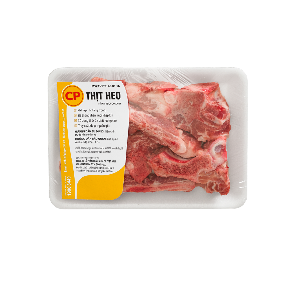 Xương cổ heo CP được đóng gói và bảo quản theo tiêu chuẩn an toàn thực phẩm, với lớp thịt dày, mềm và vị ngọt tự nhiên, thích hợp để nấu các món canh rau củ bổ dưỡng.